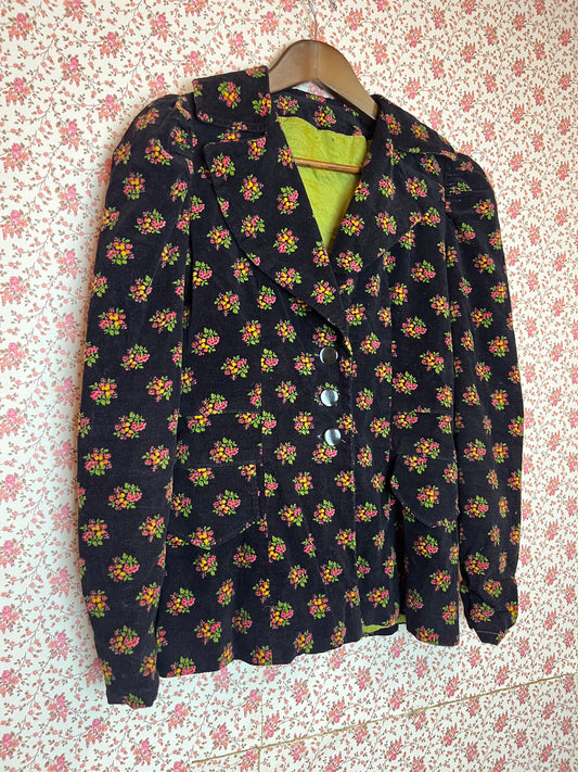 Vintage 1970s Hand Made Fine Cord Floral Blazer
