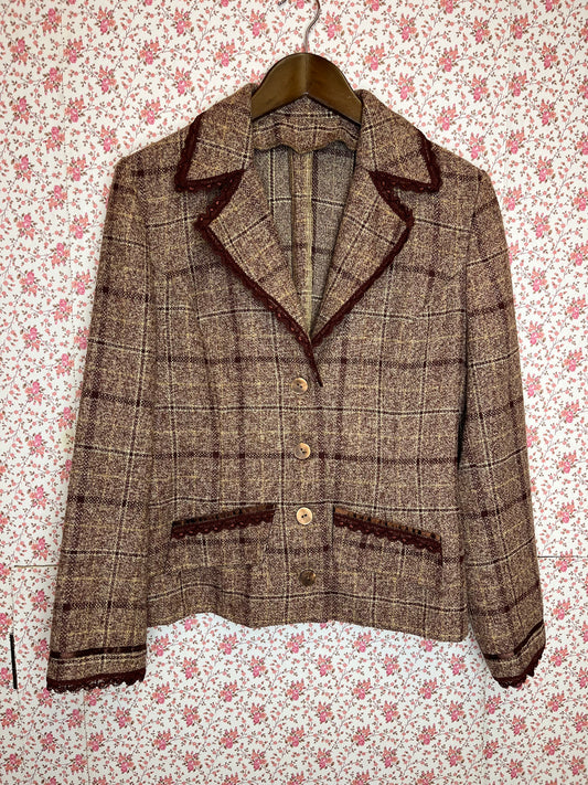 Vintage 1970s Hand Made Brown Checked Single Breasted Blazer