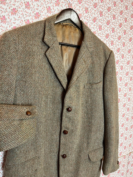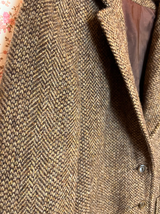 Vintage 1960s Harris Tweed Herringbone Single Breasted Blazer