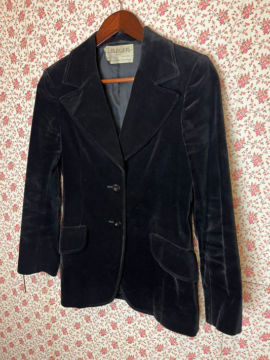Vintage 1980s Jaeger Black Velvet Single Breasted Blazer