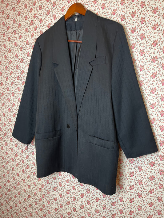 Vintage 1980s Dark Grey Pinstripe Boxy Blazer