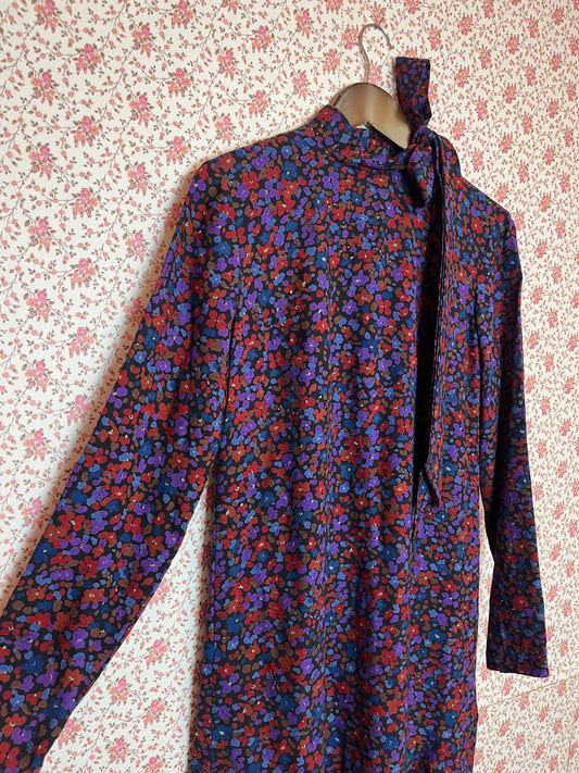 • Vintage 1970s Brown & Blue Floral Tea Dress