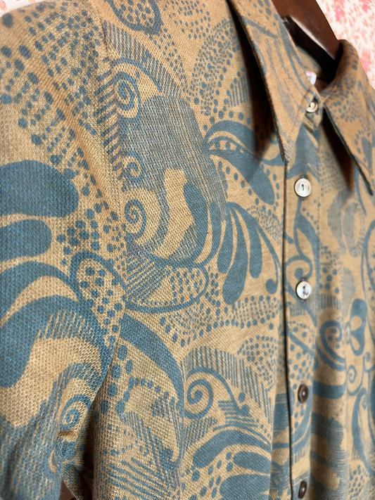 • Vintage 1970s Paisley Cotton Shirt Dress