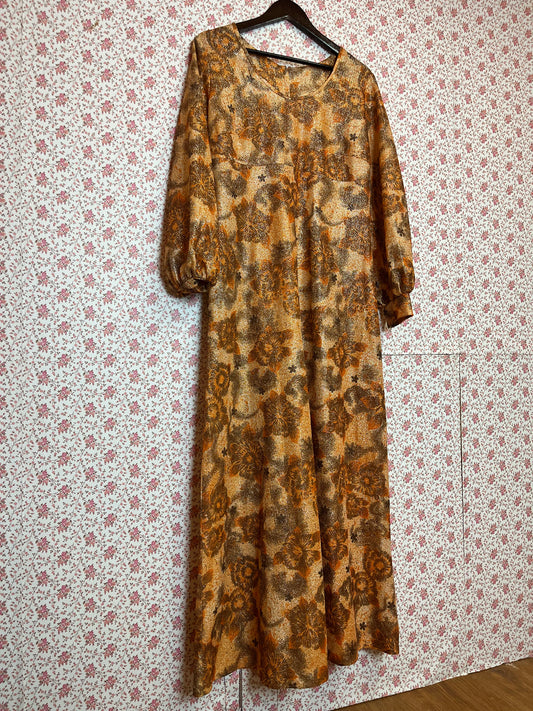 Vintage 1970s Brown & Blue Floral Tea Dress