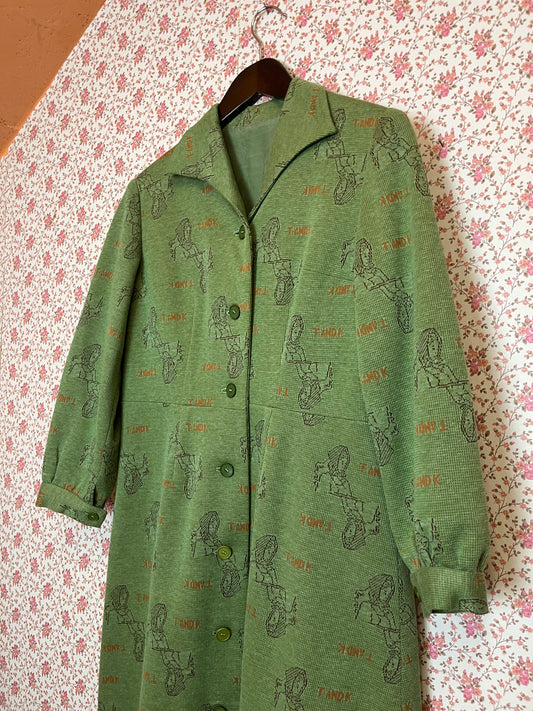 • Vintage 1970s Hand Made Woven Tandk Shirt Dress