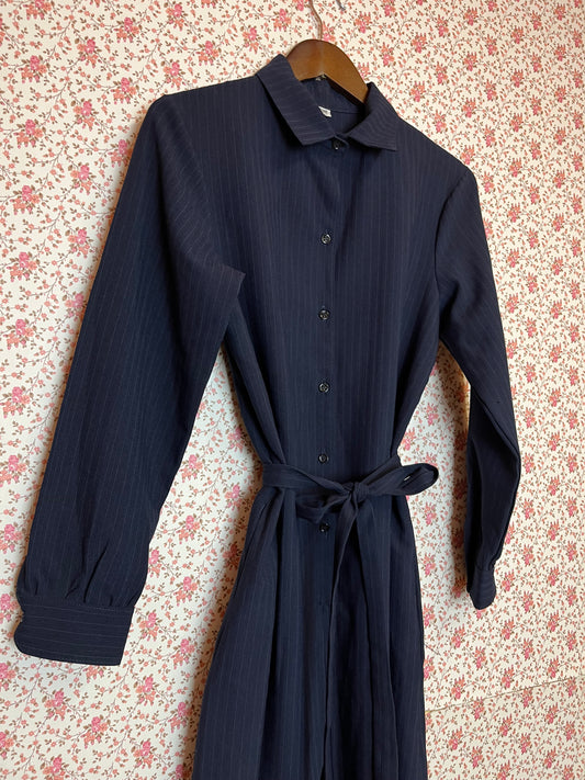 Vintage 1970s Pinstripe Shirt Waist Dress