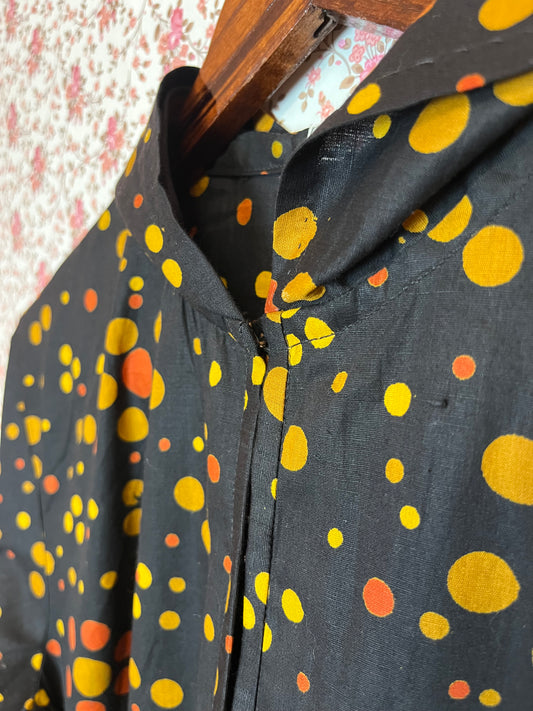 • Vintage 1970s Block Print Hooded Maxi Dress