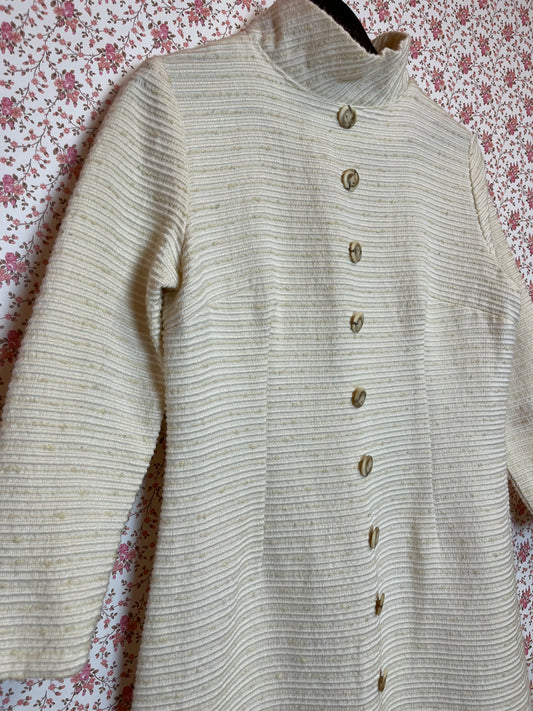 Vintage 1960s Hand Made Cream Boucle Twill Shift Dress