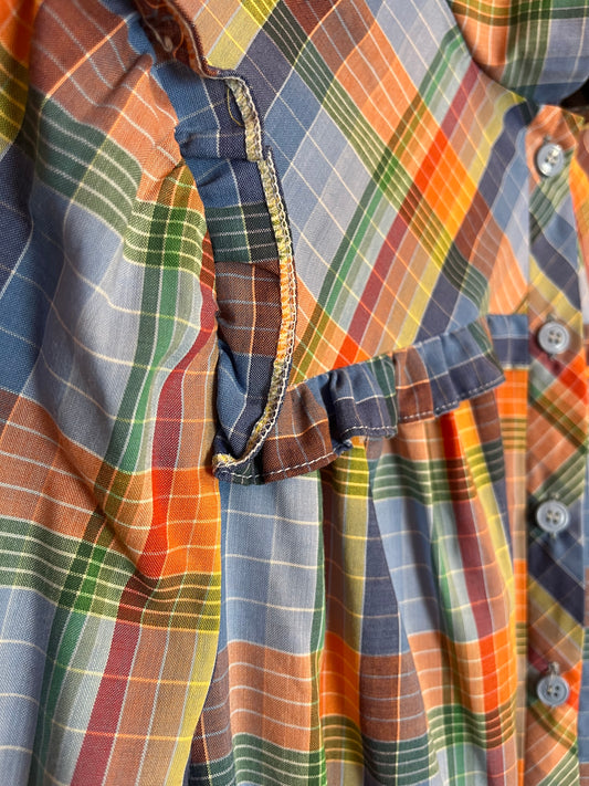 • Vintage 1970s Hand Made Checked Long Sleeve Maxi Prairie Dress