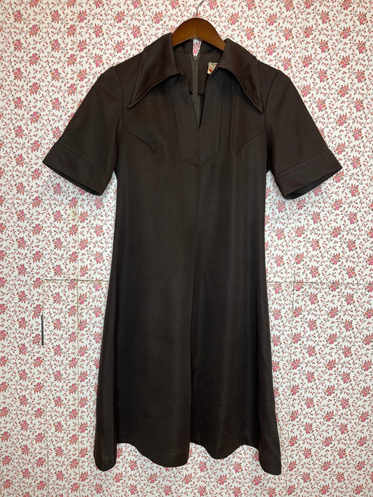 Vintage 1970s Brown Dagger Collar Fit & Flare Mini Dress