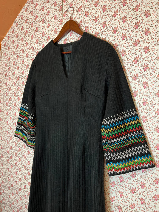 Vintage 1970s Rib Knit Maxi Kaftan with Mutli Colour Metallic Zig Zag