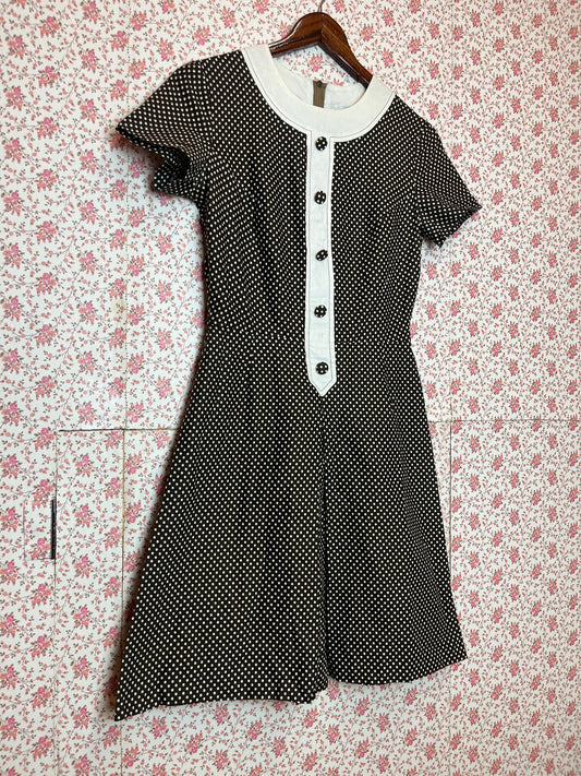 Vintage 1960s Dandi by Berketex Brown Polka Dot Mini Dress