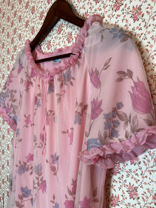 Vintage 1960s Sheer Nylon Floral Night Dress