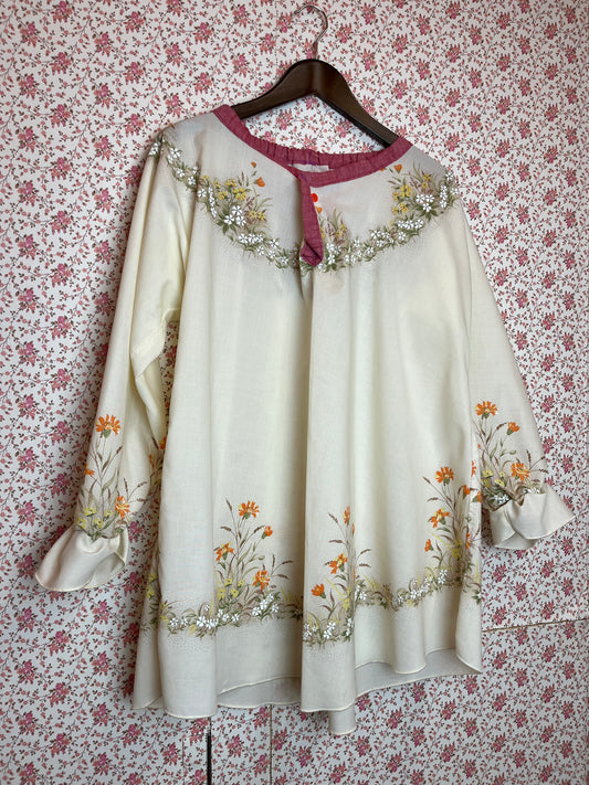 Vintage 1960s Hand Made Scoop Neck Floral Tunic