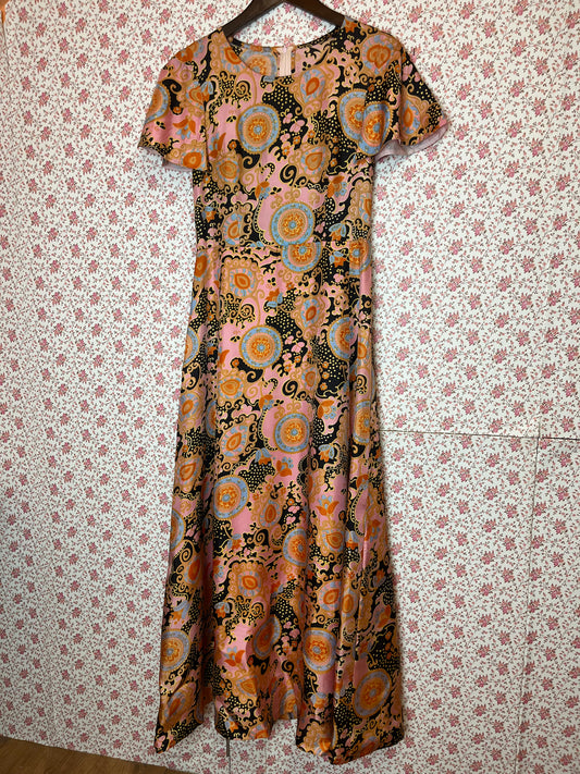 Vintage 1960s Hand Made Fluted Short Sleeve Paisley Maxi Dress