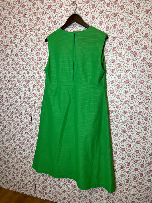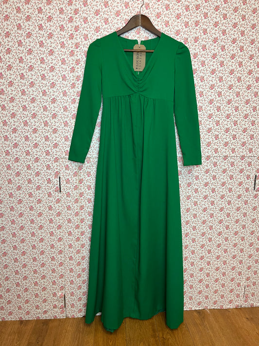 Vintage 1960s Hand Made Green Empire Waist Midi Dress