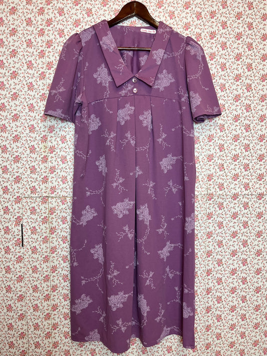 Vintage 1960s Hand Made Purple Floral Print Smock Tea Dress