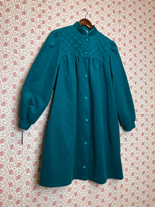 Vintage 1970s Teal Felt Long Sleeved Smock Dress