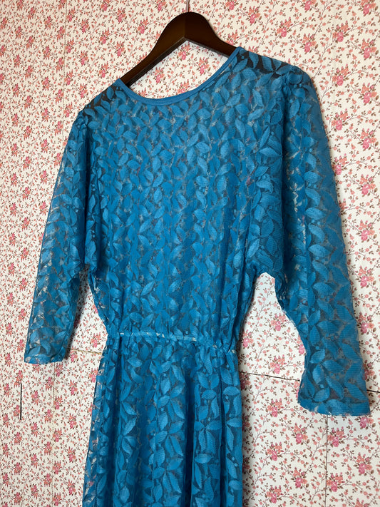 Vintage 1960s Full Blue Lace Batwing Over Dress