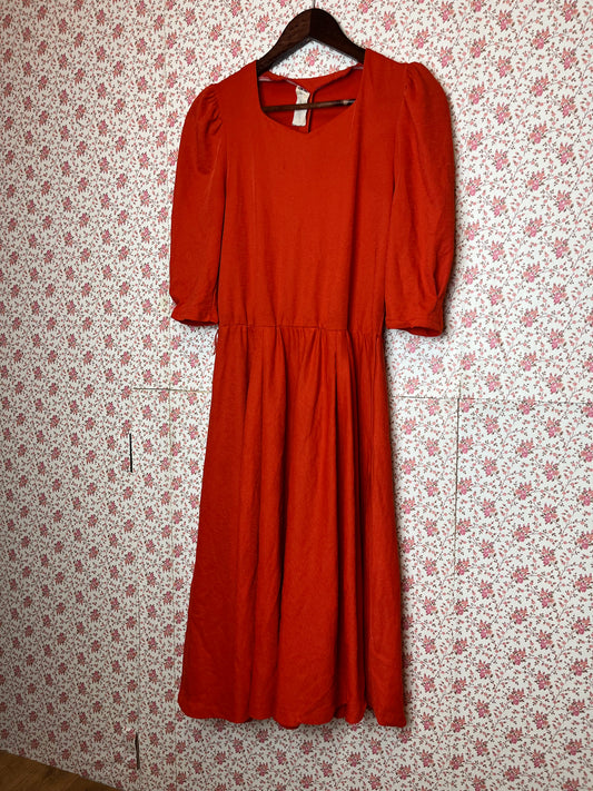 Vintage 1970s Orange Sweetheart Midi Tea Dress