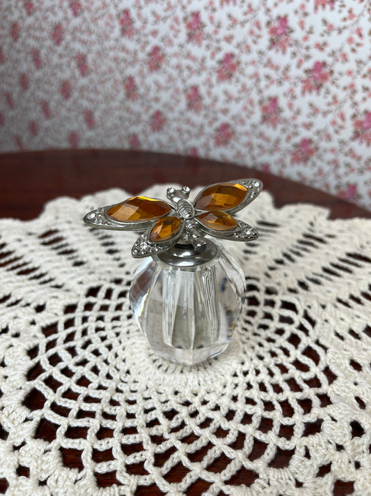 • Vintage Glass Stem Butterfly Perfume Bottle