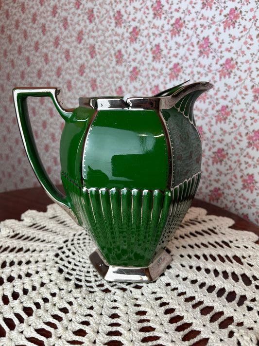 Vintage Victorian Art Deco Green and Silver Water Jug