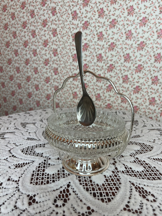 • Vintage Mayell Silver Plated & Crystal Jam Dish with Spoon