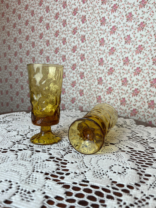 Vintage 1970s Handmade Textured Glass Cocktail Glasses set of 2