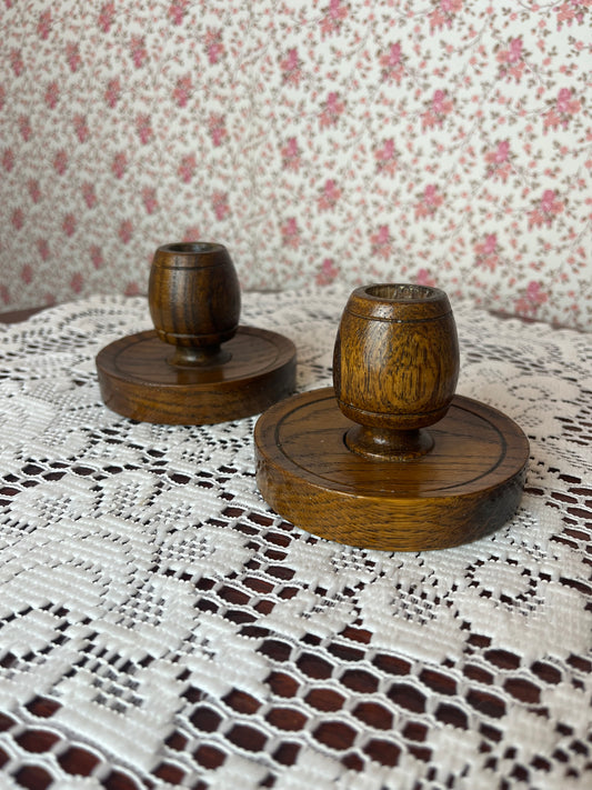 Vintage Handmade Wooden Barrel Candlestick Holders set of 2