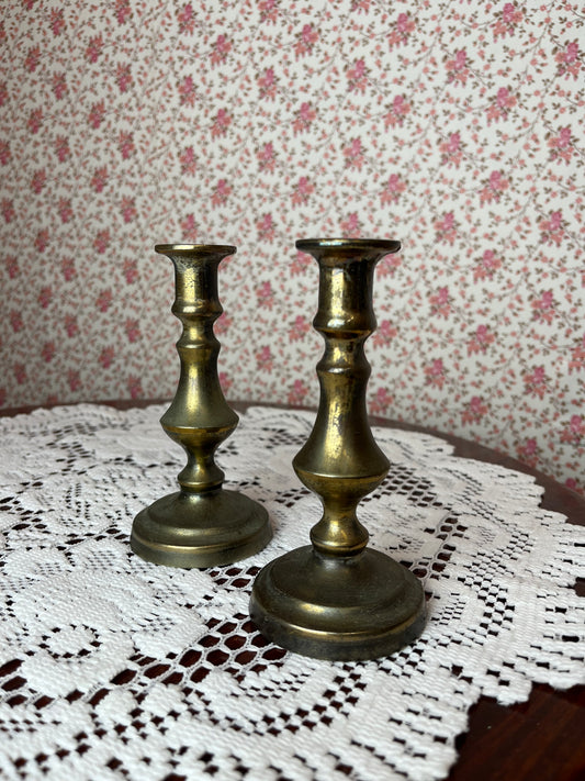 Vintage Foreign Hand Painted Floral Candlestick Holders