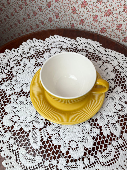 Vintage Large Ribbed Yellow Bowl Cup & Saucer