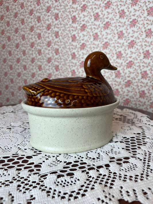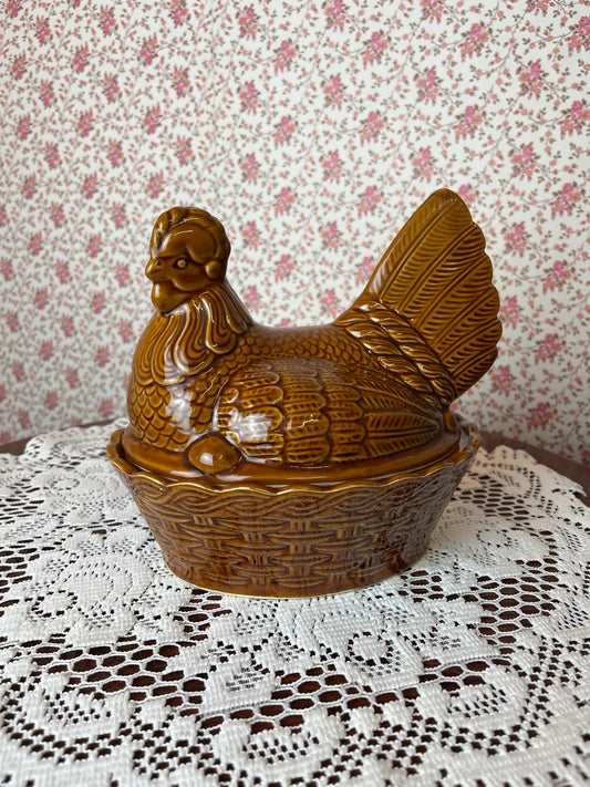 Vintage 1970s Earthenware Hen Glazed Terrine Dish
