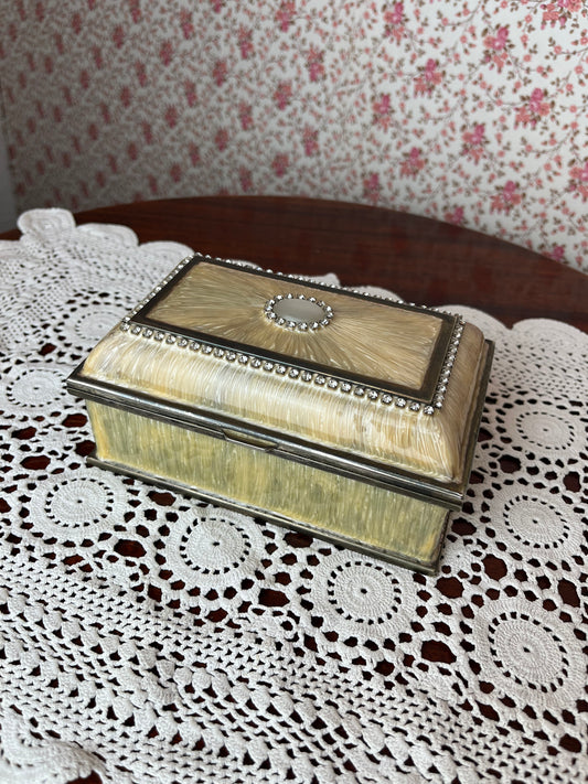 Vintage Silver Plated Ivory Resin Jewellery Box