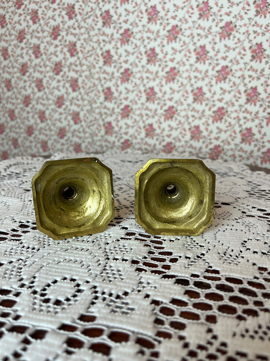 Vintage Art Deco Pink Glass Candlestick Holders set of 2