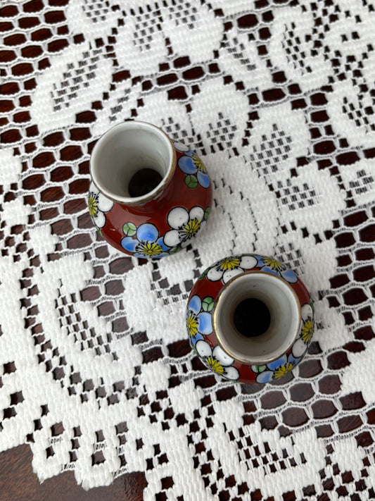 Vintage 1940s Marumon Ware Japanese Floral Chamberstick Candle Holders