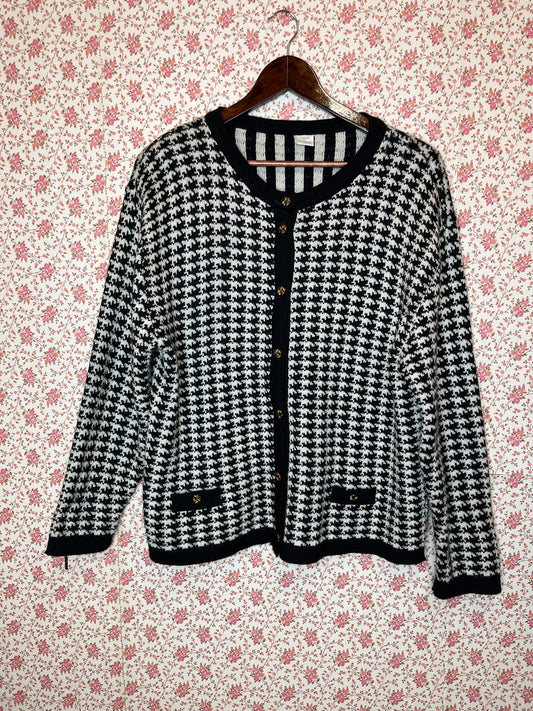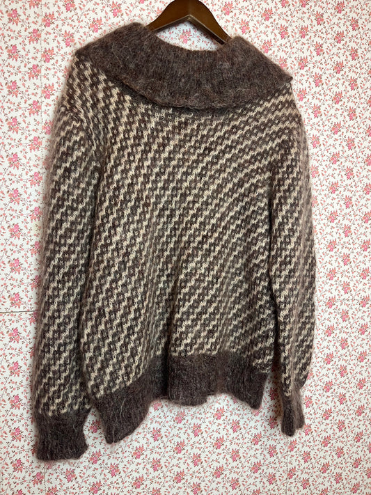 Vintage 1980s Abstract Pattern Black & Brown Knitted Mohair Cardigan