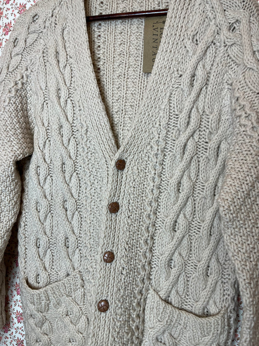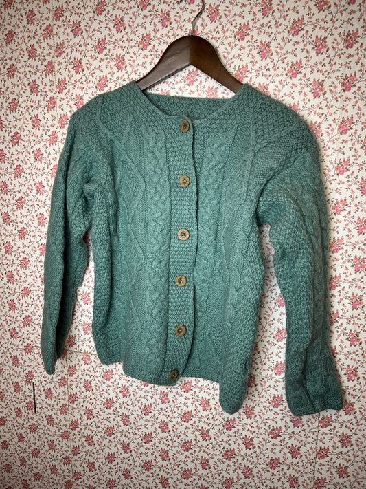 Vintage Hand Knitted Cable Knit Teal Wool Cardigan