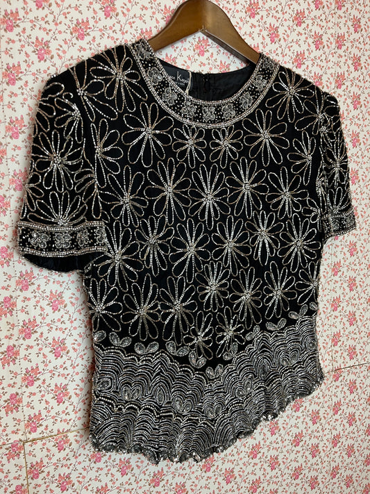 Vintage 1980s Beaded Sequin Embroidered Silk Top