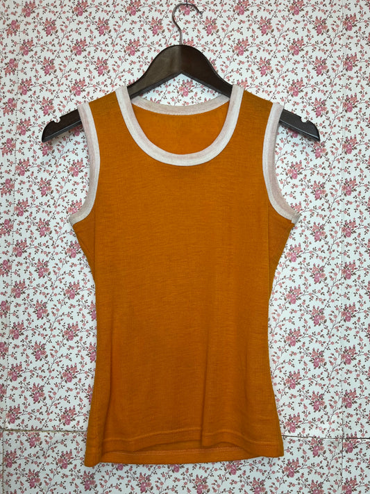 Vintage 1970s Yellow Contrast Stitch Sleeveless Shirt