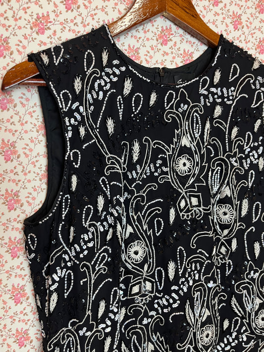 Vintage 1970s Beaded Embroidered Sequin Silk Sleeveless Top