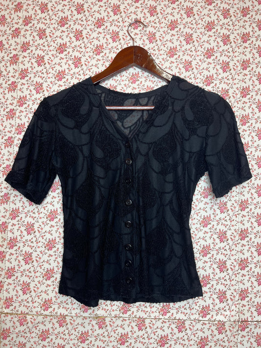 Vintage 1980s Laurence Kazar Heavily Beaded Black Silk Top