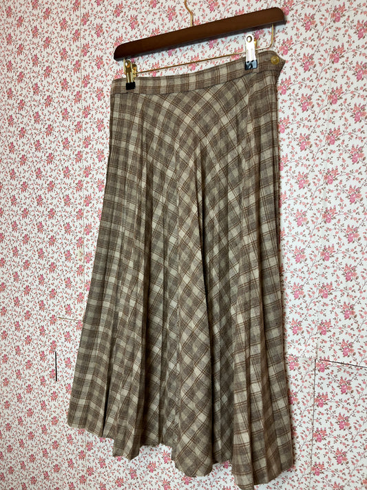 Vintage 1970s Checked Pleated Midi Skirt