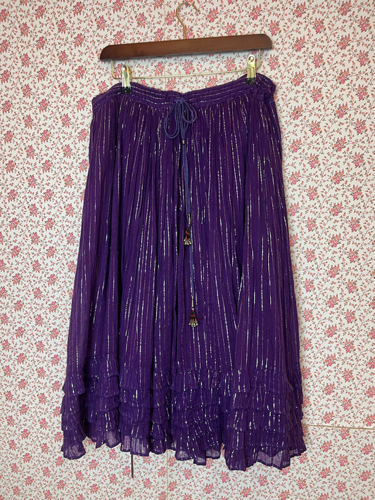 Vintage 1970s Indian Cotton and Lame Purple Maxi Skirt