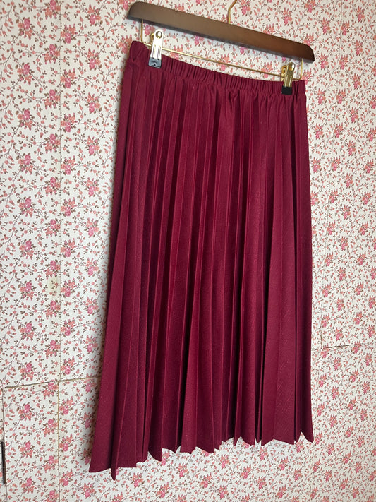 Vintage 1980s Burgundy Pleated Midi Skirt