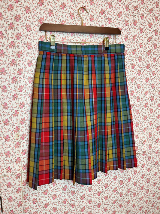 Vintage 1980s Multi Colour Checked Pleated Midi Skirt