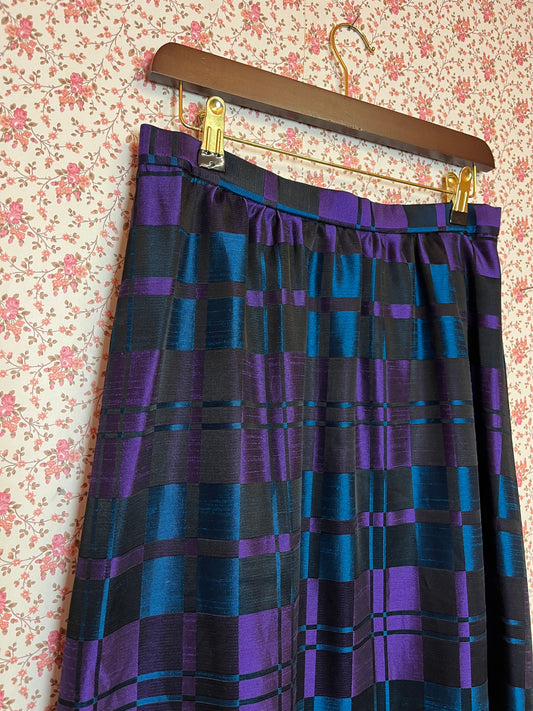 Vintage 1970s Hand Made Checked Satin Maxi Skirt