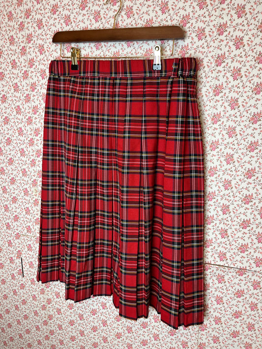 Vintage 1980s Red Tartan Checked Pleated Midi Skirt