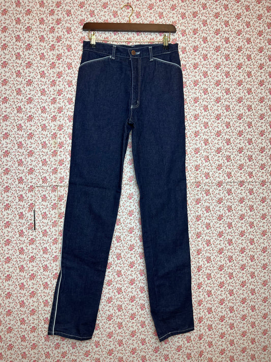 Vintage 1980s Easy High Waisted Blue Denim Jeans with Contrast Stitching