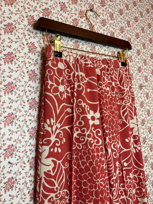 Vintage 1970s Coral Pink Floral Trousers