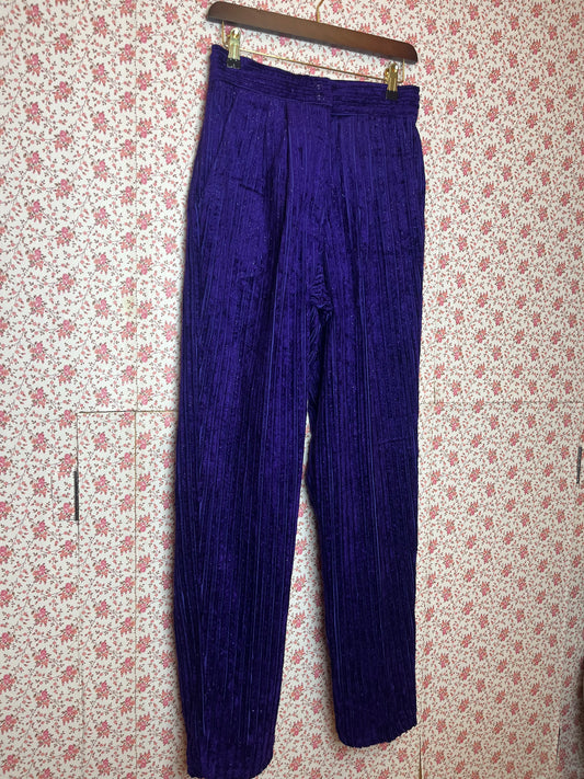 Vintage 1980s Purple Metallic Corduroy Tapered Trousers